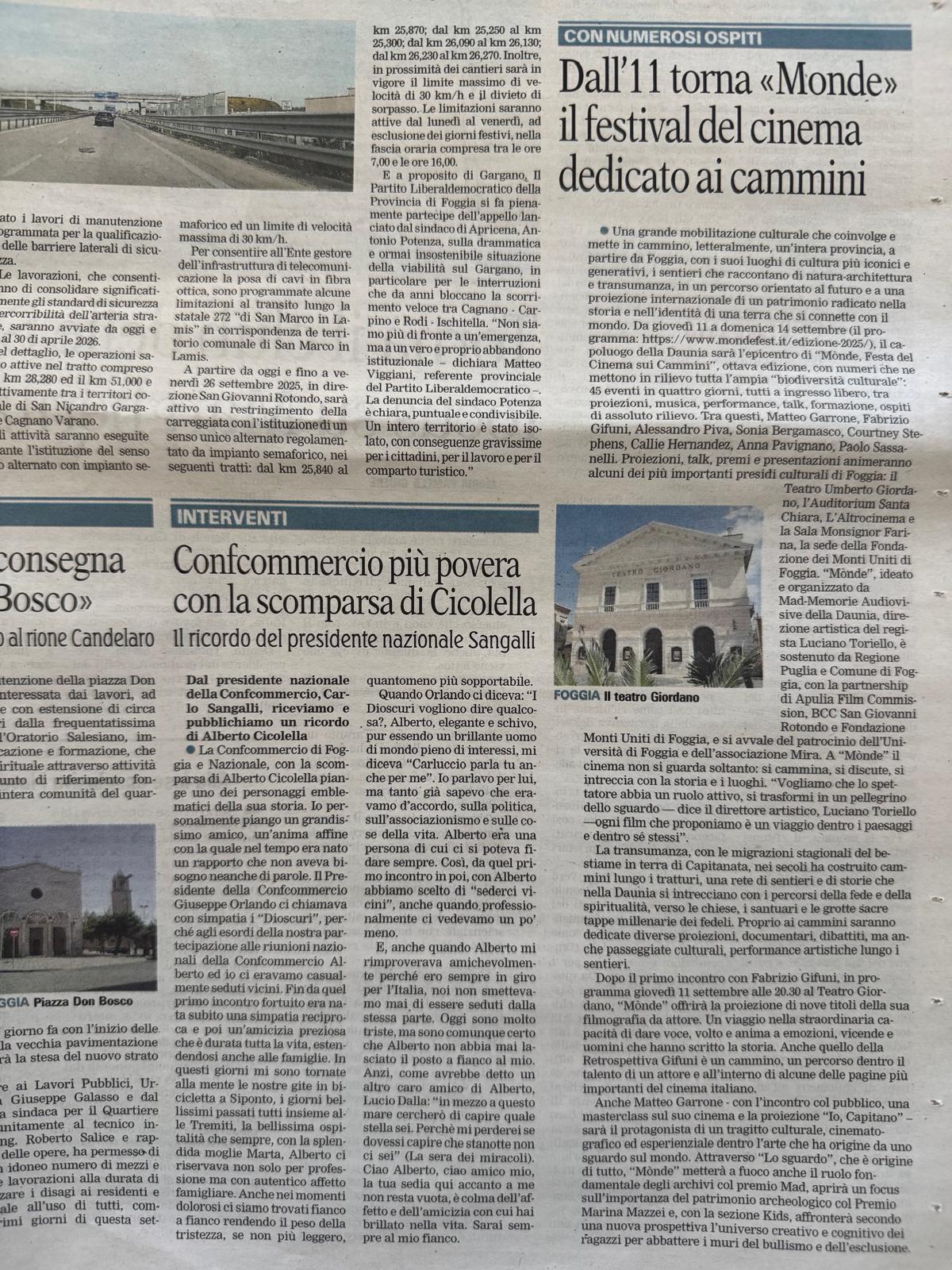 La Gazzetta del Mezzogiorno 8 settembre 2025 Festival del cinema dedicato ai Cammini.... |