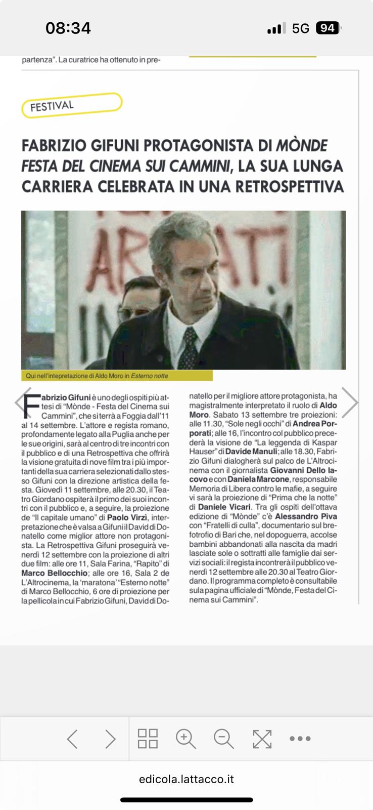 L'Attacco - martedì 9 settembre 2025 Fabrizio Gifuni al Festa del Cinema sui Cammini La sua lunga carriera ......leggi tutto |