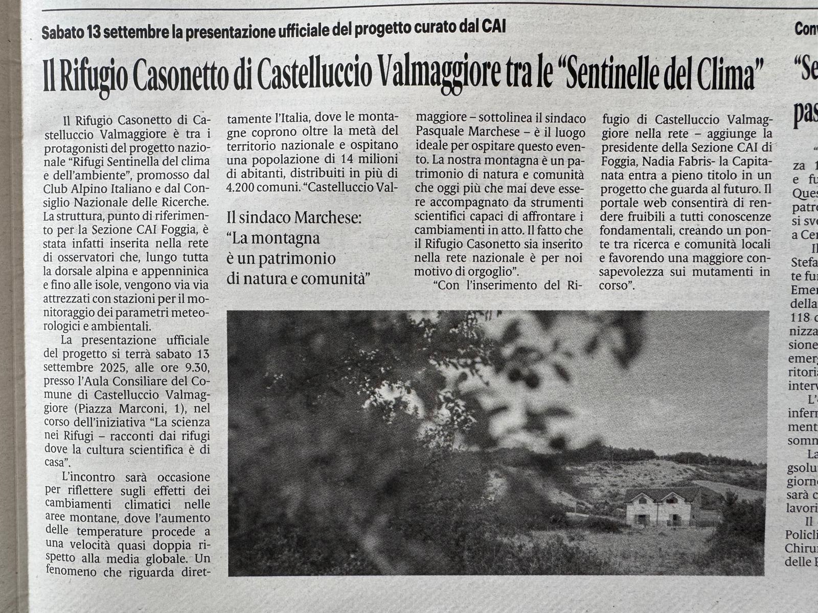 La Gazzetta del Mezzogiorno - Sabato 13 settembre 2025 La presentazione ufficiale del progetto CAI .... |